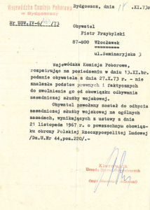 Odpowiedź z Wojewódzkiej Komisji Poborowej w Bydgoszczy